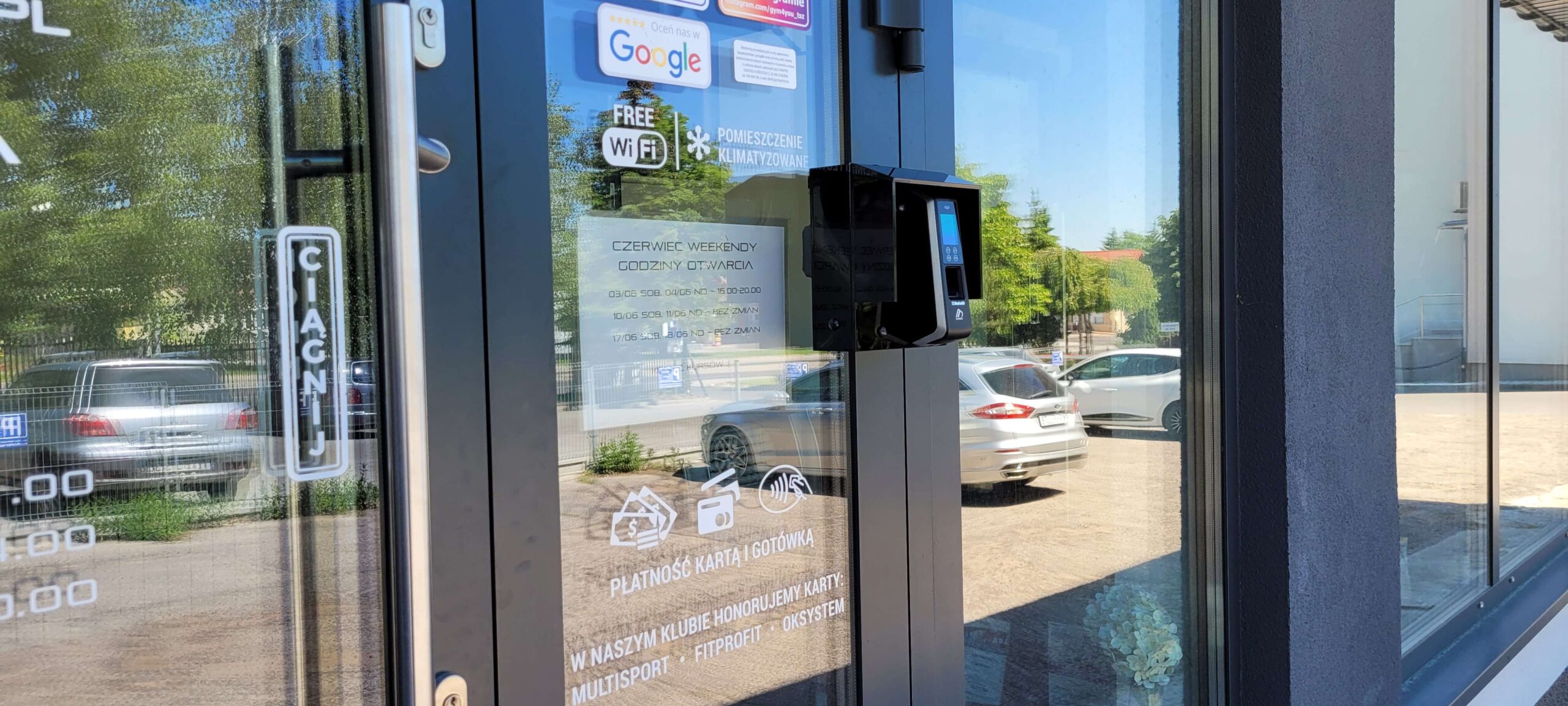 Właściciel GYM4YOU zdecydował się na wdrożenie automatycznej kontroli dostępu przy wejściu na teren obiektu. Miało to na celu umożliwić klientom korzystanie z klubu również pod nieobecność recepcji. Rozwiązanie jakie wybrał po konsultacji z ekspertami GYMMANAGER to drzwi z elektrozworą otwierane z pomocą czytnika virdi AC 2100 z rozszerzeniem o czytnik QR kodów. Czytnik został umieszczony przy drzwiach wejściowych do klubu. Poza godzinami pracy recepcji, klienci z aktywnymi karnetami miesięcznymi nabytymi online w Panelu Klienta lub wcześniej w recepcji klubu, mogą użyć kodu QR do otwarcia drzwi wejściowych. Wyjście z klubu możliwe jest bez skanowania kodu, po naciśnięciu odpowiedniego przycisku znajdującego się obok drzwi wyjściowych.