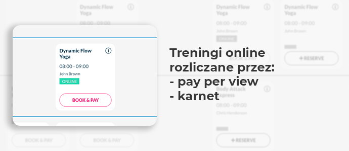 W GYMMANAGER treningi online mogą był opłacane z góry lub rozliczane przy pomocy aktywnego karnetu.